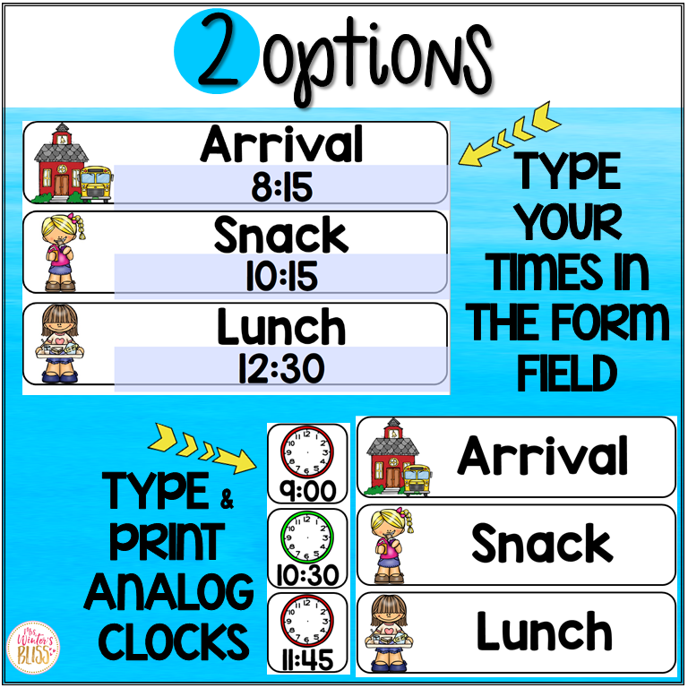 ANALOG CLOCKS (you will need to draw the hands to match the times in your schedule)