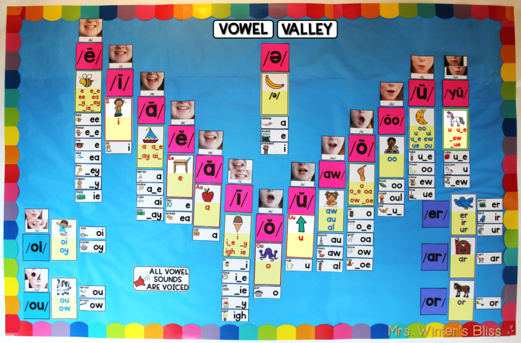 Check out these posts for more information on how to set up a consonant sound wall and vowel valley.