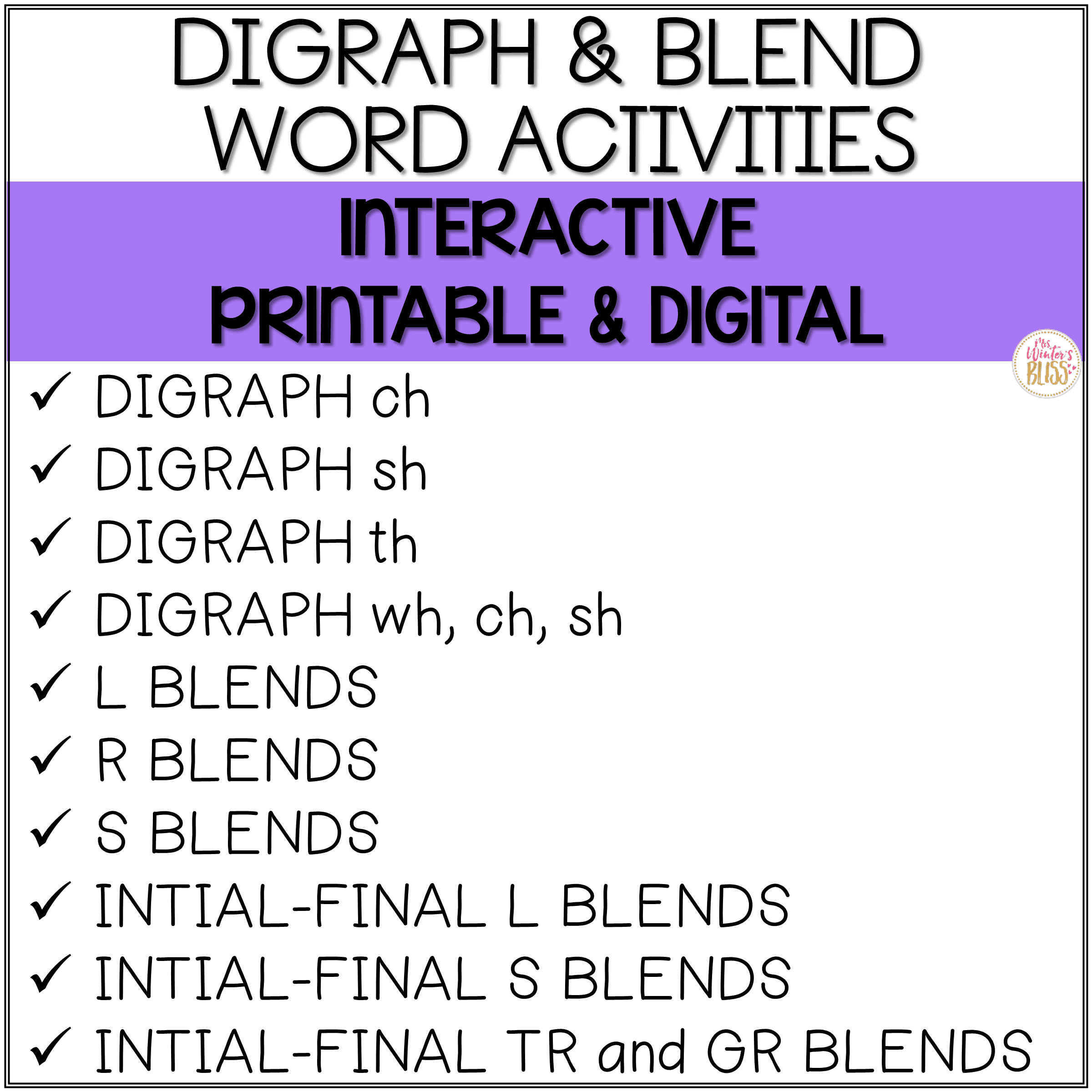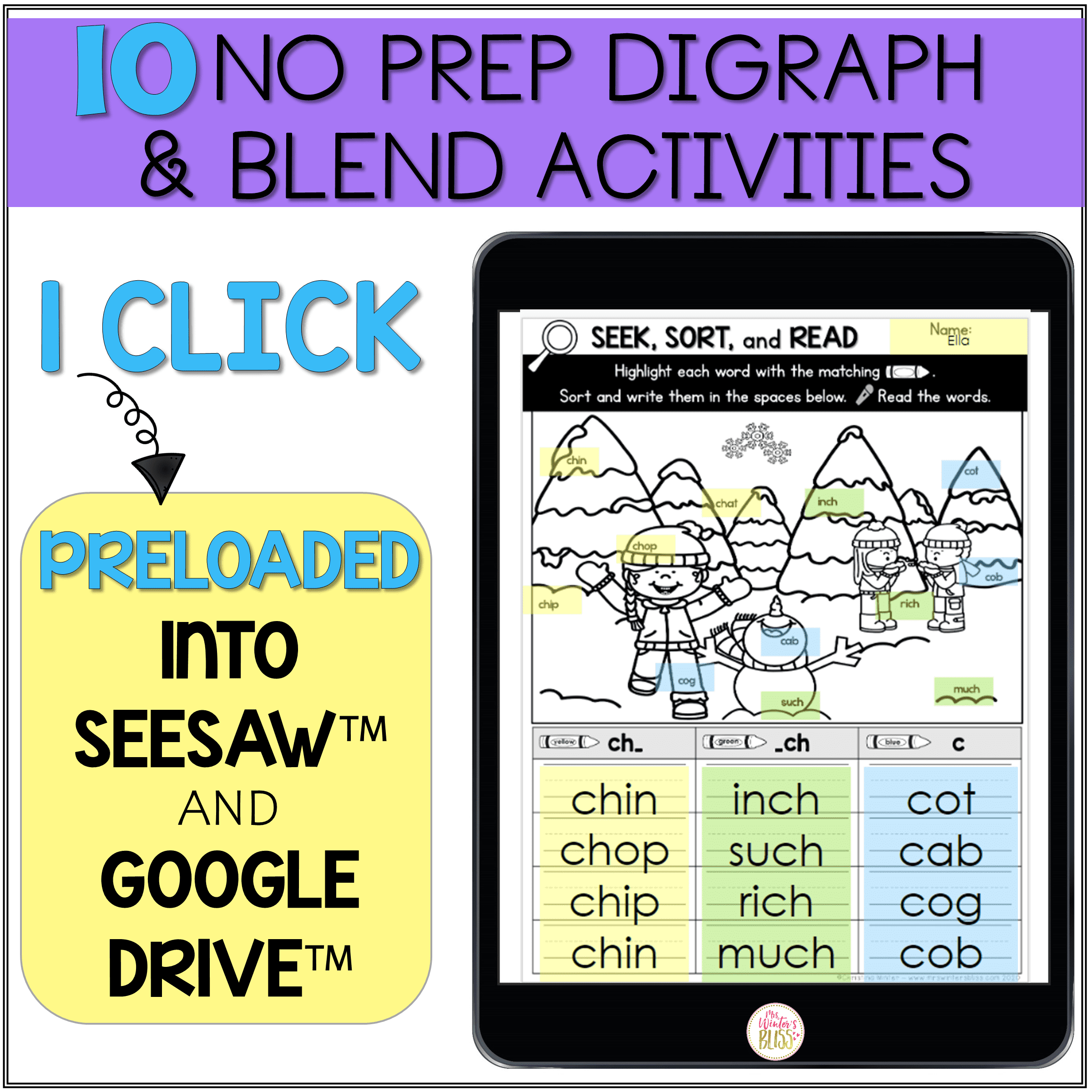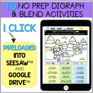Digraph & Blend Word Activities – Printable and Digital PRELOADED Seesaw™ & Google Classroom™