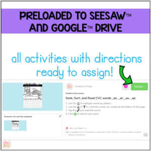 Word work practice activities for Kindergarten, first grade, and second grade students! This NO PREP resource has been PRELOADED for you, with 1 click add them to your Seesaw library or Google Drive, then assign to your students!