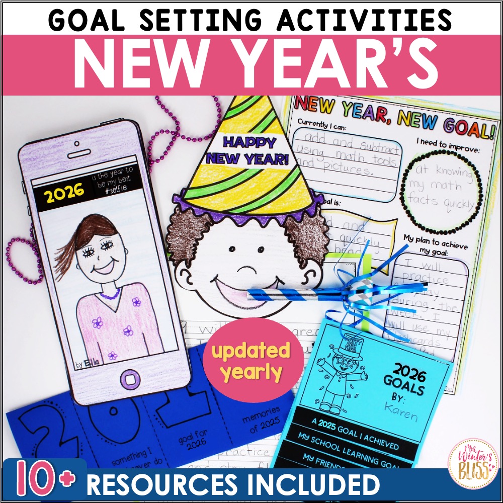 Kids love sharing their New Year’s goals and resolutions! These New Year’s activities are engaging and easy to prep to welcome students back to the classroom for the new year. There are many options available in this New Year’s goals and activities resource! This resource includes FREE YEARLY UPDATES!