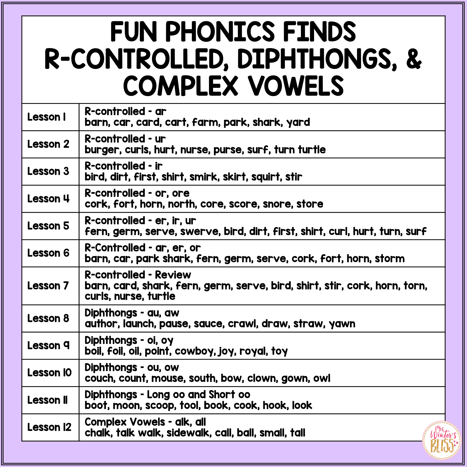 R-CONTROLLED VOWEL & DIPHTHONG PATTERNS INCLUDED: