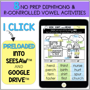 R-Controlled Vowels and Diphthong Word Activities – Printable and Digital PRELOADED Seesaw™ & Google Classroom™