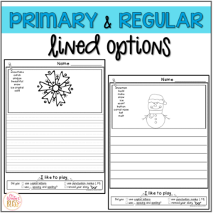 To say that there was excitement in the room when I introduced these resources would be a huge understatement. We started with the dog and cat writing which they loved. Even my strugglers were writing! The word bank is fantastic and the fact that they got to draw and color after they wrote was a win! I had groans when I said that we finished with centers. Most had not gotten to the picture because they were working on the words. That has never happened! The winter scene is another huge hit!