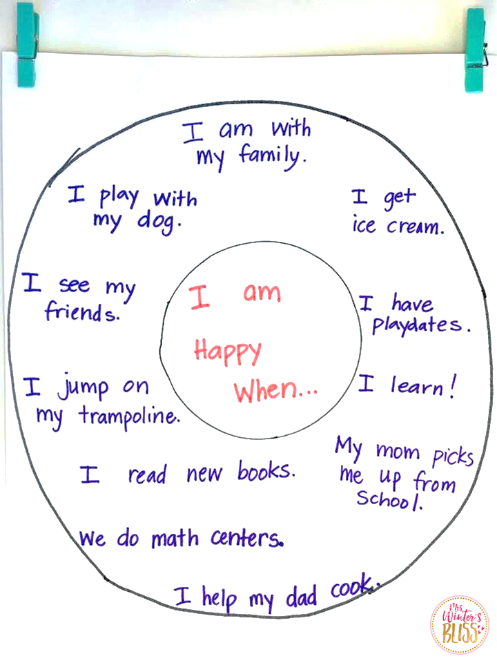 Invite your students to think of all the people and things in their lives that make them happy. Together as a class create a happiness circle map anchor chart and post it near a writing center as a springboard for new stories. Be sure to also jot down what makes you smile. Your students may be surprised at just how many things they have that give them joy.