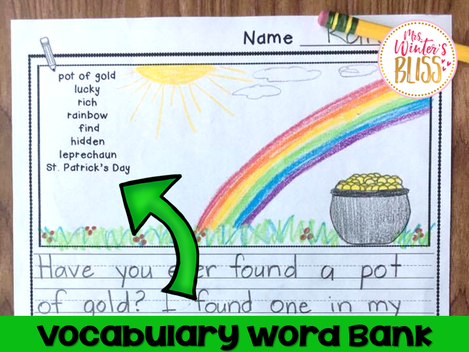 The picture prompts include a variety of supports. For one, there is a list of related words included with each prompt. These are words I predict they may need while writing their story. Not only do the words support their spelling, but they also make it easier for students to add more detail to their writing.