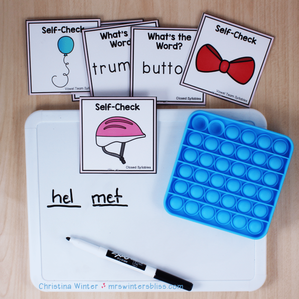 - Silicone Bubble Poppers: Students simply push down a popper for each syllable they hear in the given word. Then they identify the type of each syllable they “popped”.